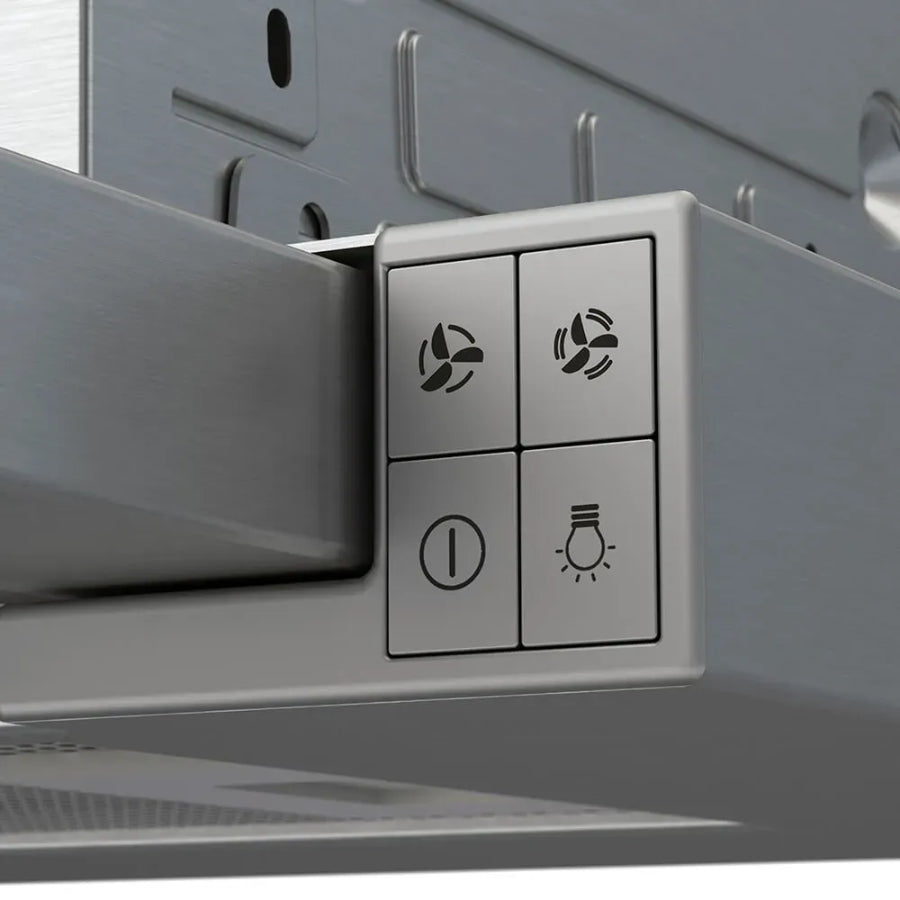 - Tres velocidades de ventilación: Ajusta la potencia de extracción según el tipo de cocción para mantener un ambiente limpio en todo momento.